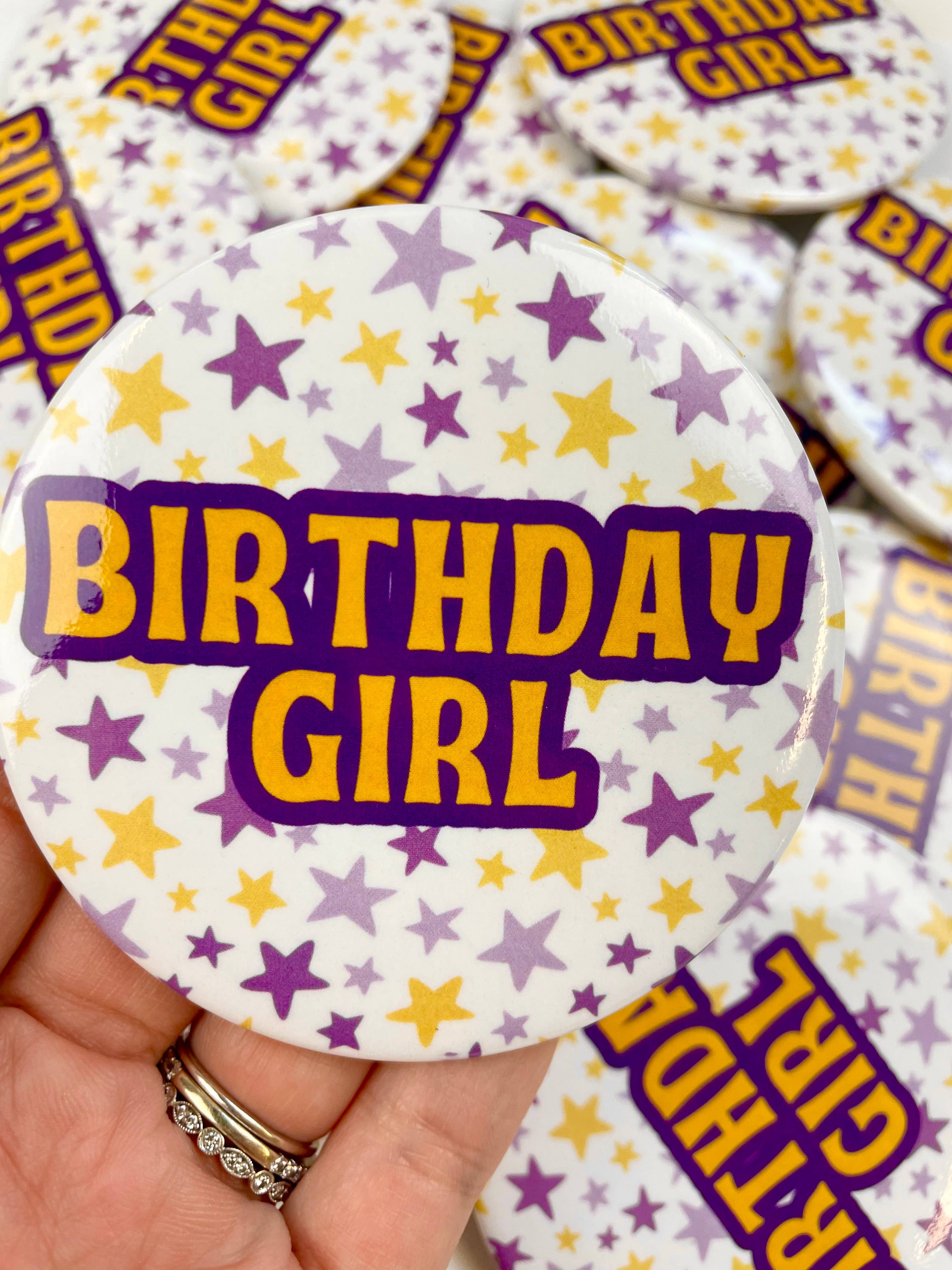 Each pin back button is 3 inches in diameter. These buttons are super lightweight and perfect for Game Day! Add to your outfit or a purse strap to complete your game day look. Each button is finished with a plastic coating to keep your button clean from any game day activities!