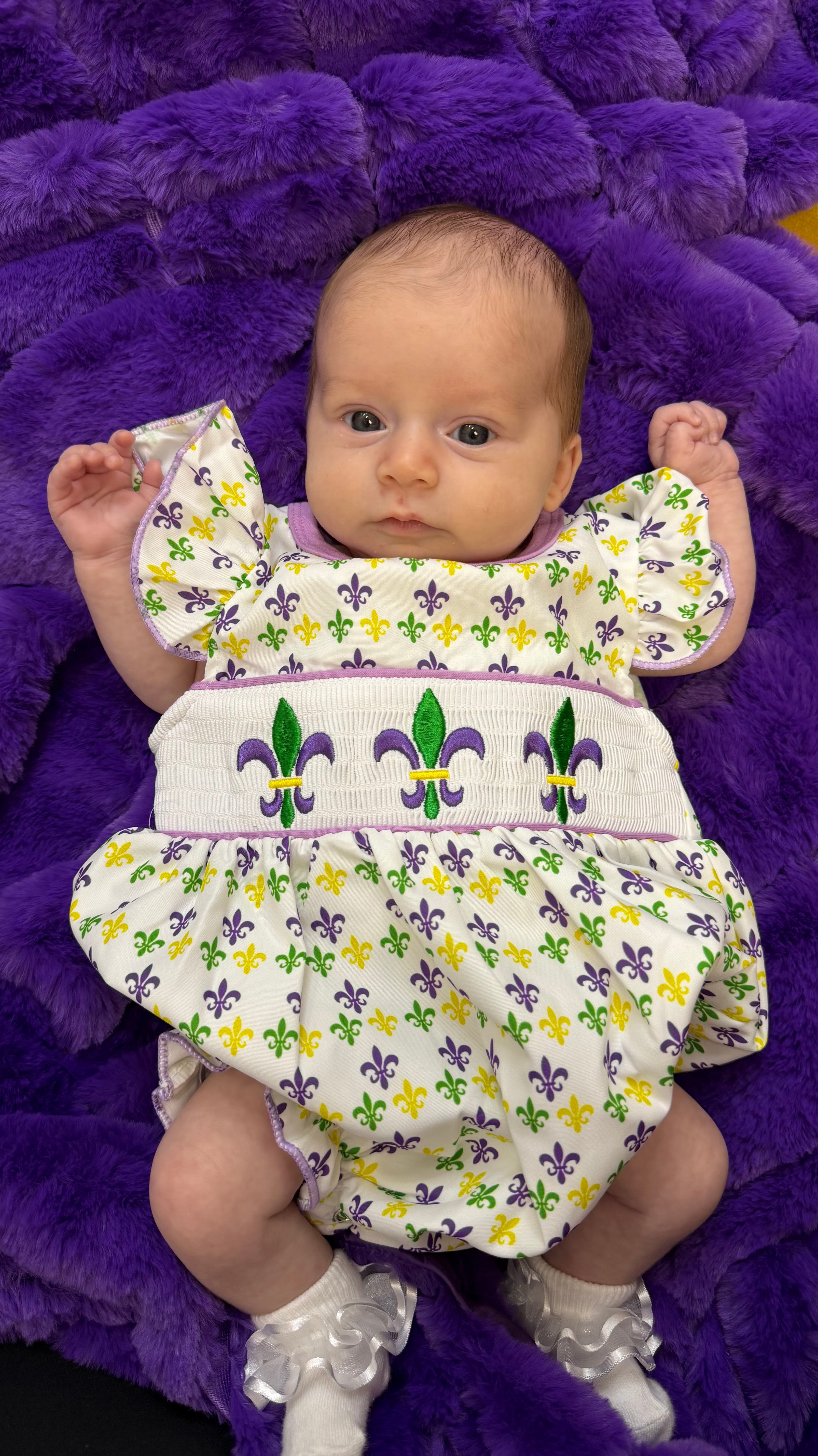 PerfectGet your tiny reveler ready to parade in style with the Mardi Gras smock bubble! This bubbly delight is perfect for little ones to join in the festive fun while keeping comfy (because who wants to be fussy during a party?)