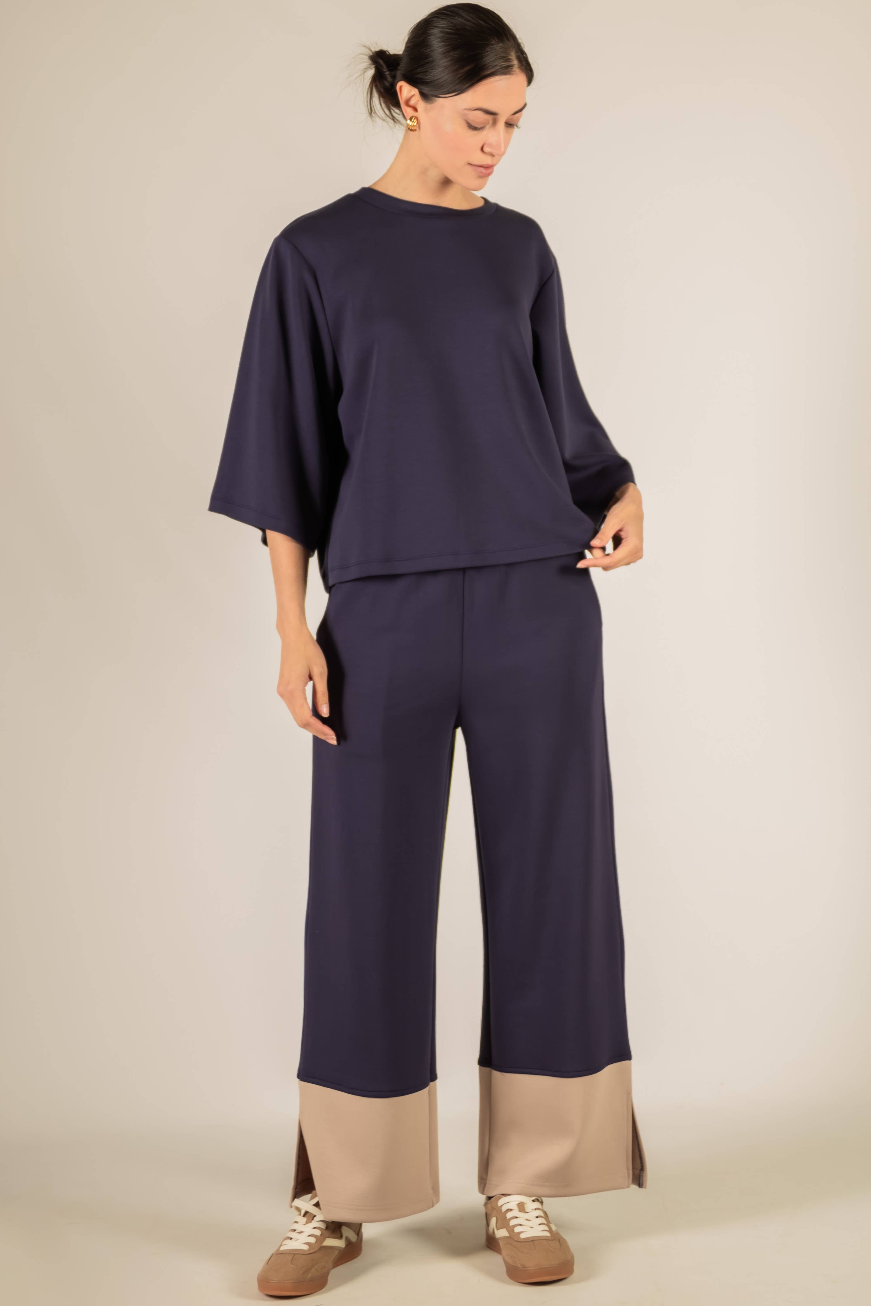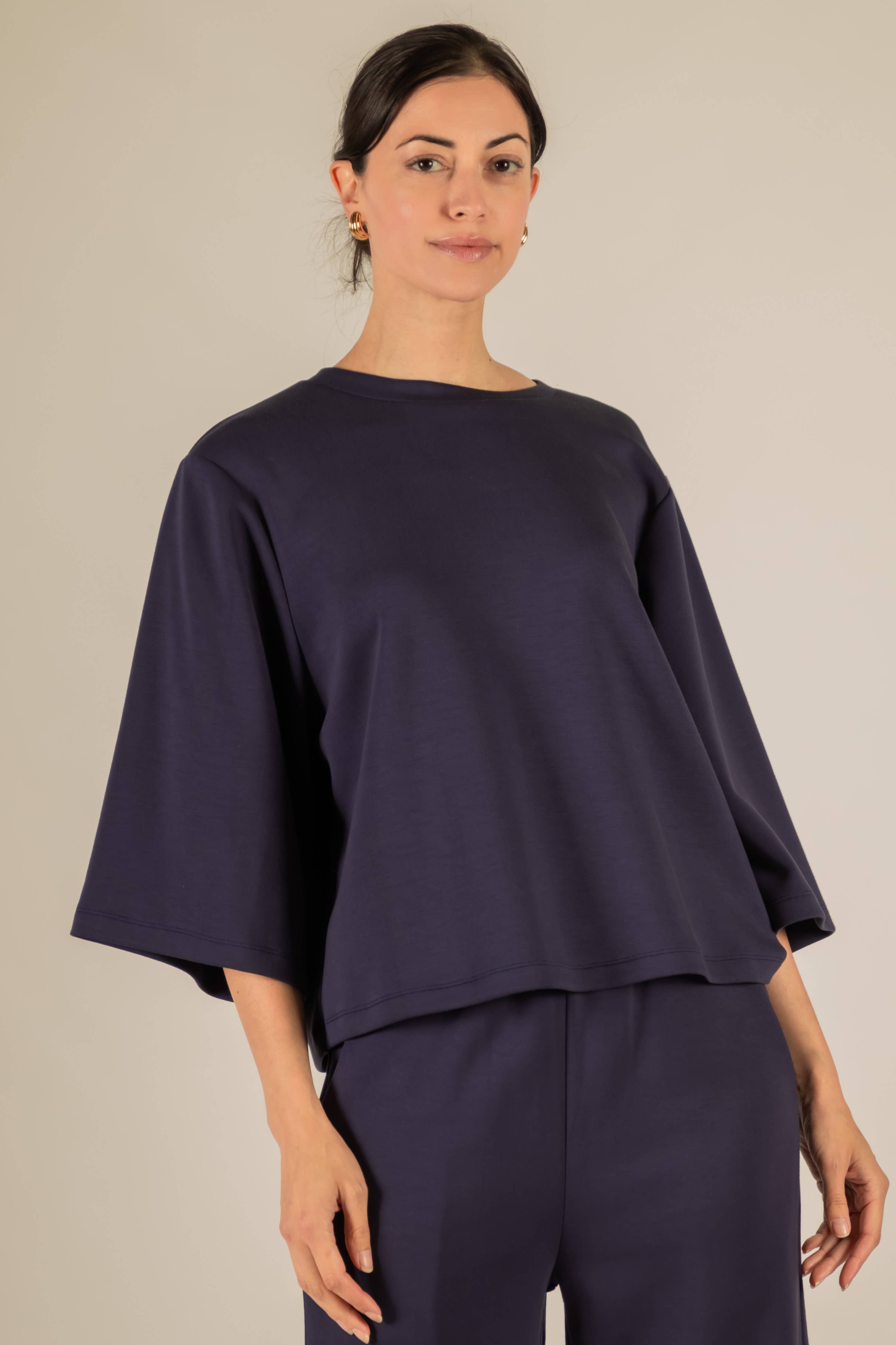 P. CILL Butter Modal 3/4 Sleeve Round Neck Top: Navy