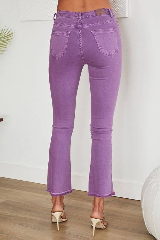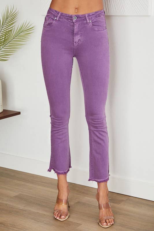 STRAIGHT LEG RAW EDGE DENIM FLARE JEANS (6826): Purple